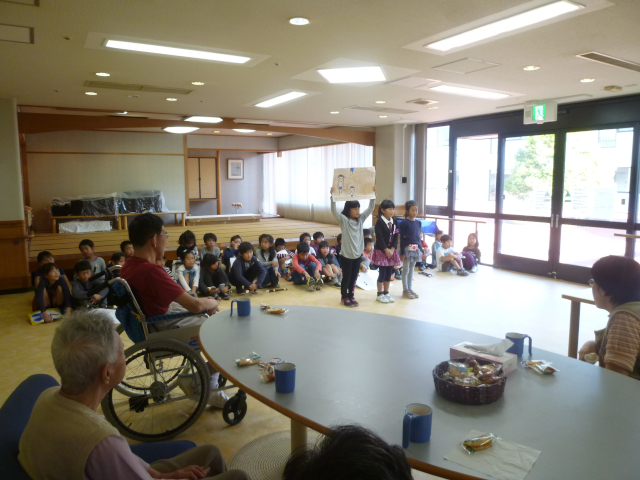 毎年、近隣の小学校の児童が合唱や楽器演奏をしてくれ、皆さん子供たちと接し、嬉しそうです。